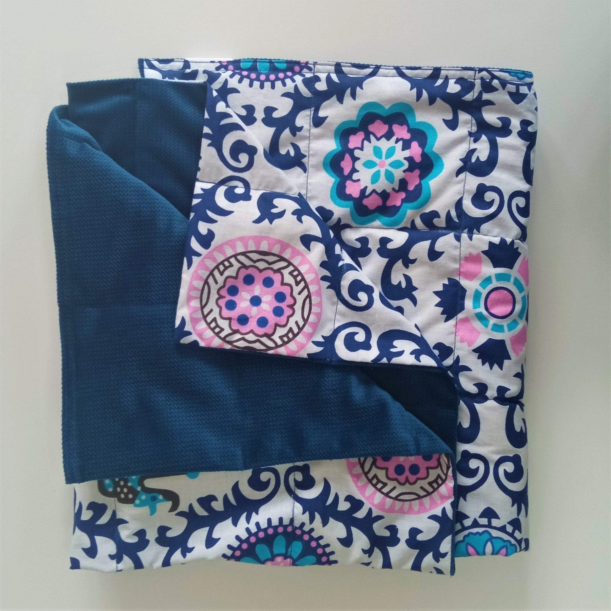 60x80cm Elefantes Indios con Manta Terciopelo Azul Marino, 2kg